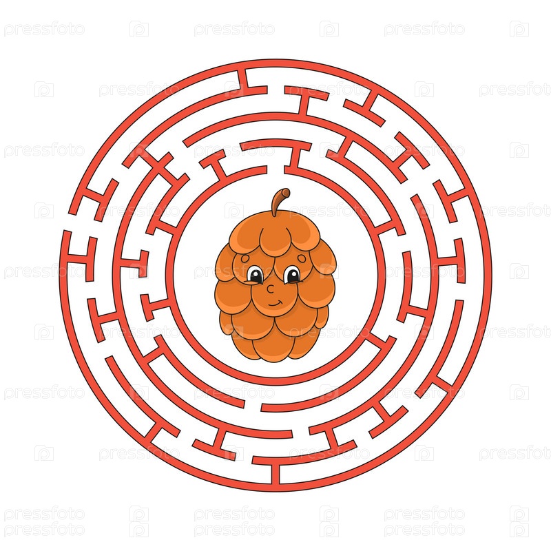 Круговой лабиринт. Игра для детей. Головоломка для детей. Круглая головоломка лабиринта. Цветная векторная иллюстрация. Найдите правильный путь. Рабочий лист по образованию