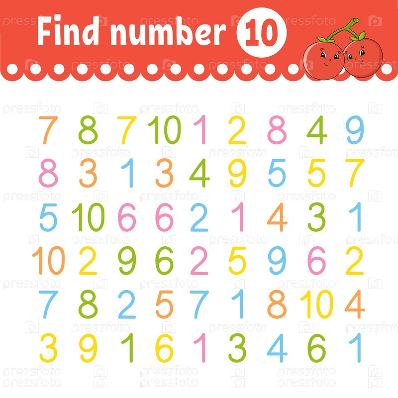 Найдите число. Образовательный развивающий рабочий лист. Страница с заданиями с картинками. Игра для детей. Забавный персонаж. Мультяшный стиль. Векторная иллюстрация