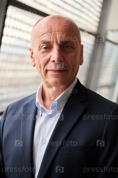 Портрет опытного бизнесмена в обстановке современной конференции