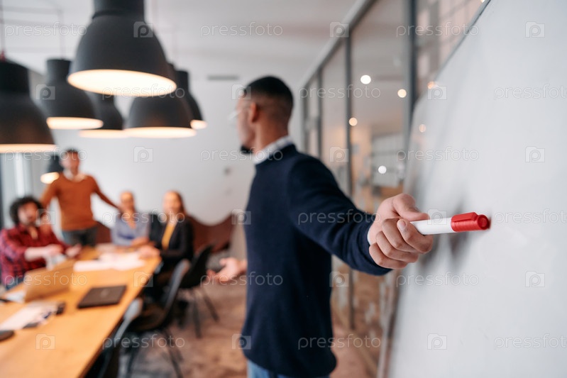 Стратегическое лидерство: афроамериканский бизнесмен возглавляет важную корпоративную встречу