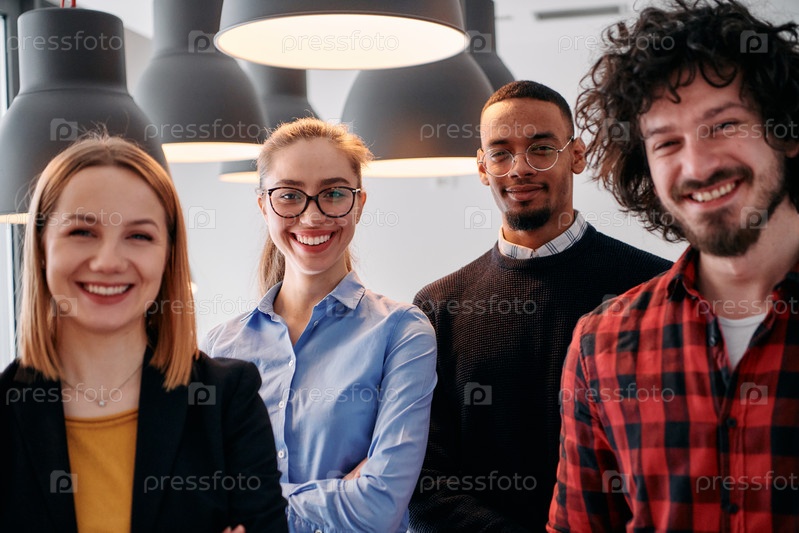 Разнообразная бизнес-команда, сплоченная в современном офисе, готовая к новым вызовам