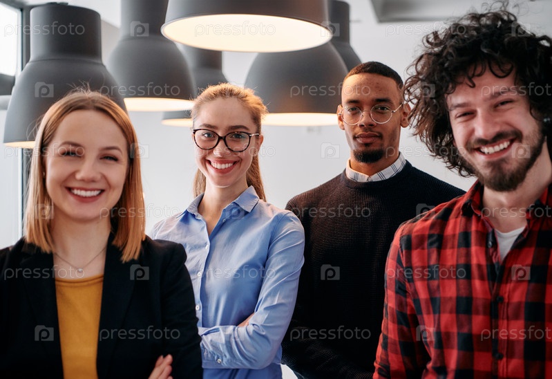 Разнообразная бизнес-команда, сплоченная в современном офисе, готовая к новым вызовам