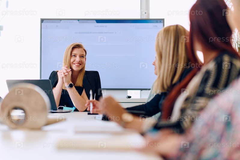 Профессиональные деловые женщины провели совещание по новым проектам в современном офисе