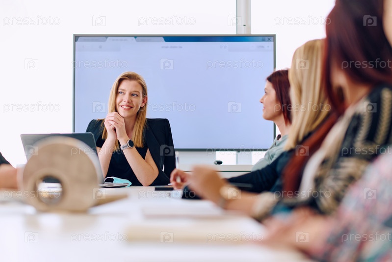 Профессиональные деловые женщины провели совещание по новым проектам в современном офисе