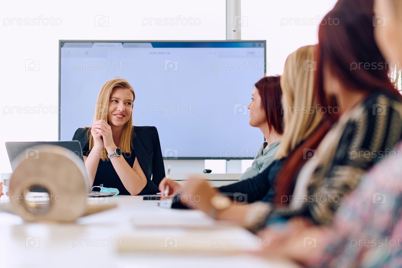 Профессиональные деловые женщины провели совещание по новым проектам в современном офисе
