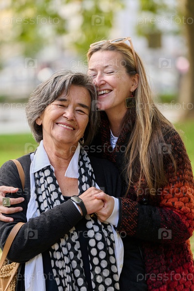 Сердечные объятия: дочь поддерживает свою мать в прекрасный осенний день