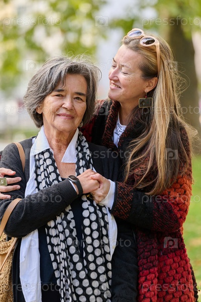 Сердечные объятия: дочь поддерживает свою мать в прекрасный осенний день