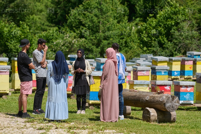 Разнообразная группа молодых друзей и предпринимателей исследует возможности малого бизнеса по производству меда в естественной сельской местности