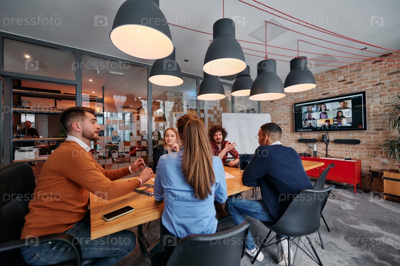 Разнообразная команда профессионалов в сфере бизнеса участвует в обсуждениях различных проектов и разрабатывает новые бизнес-стратегии, воплощая креативность и инновации в предпринимательской среде