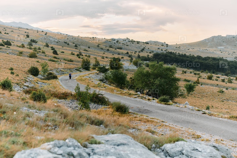 Воодушевленный бегун наслаждается красотой природы на спокойной утренней пробежке