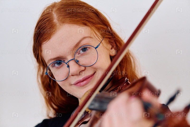 Потрясающая рыжеволосая музыкантша позирует со скрипкой на пленительном портрете