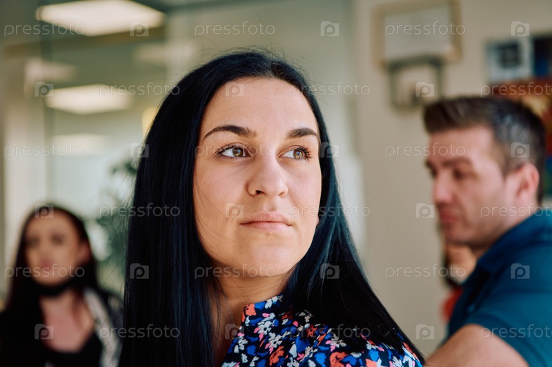 Профессиональная бизнес-леди проводит интересную встречу с коллегами: портрет