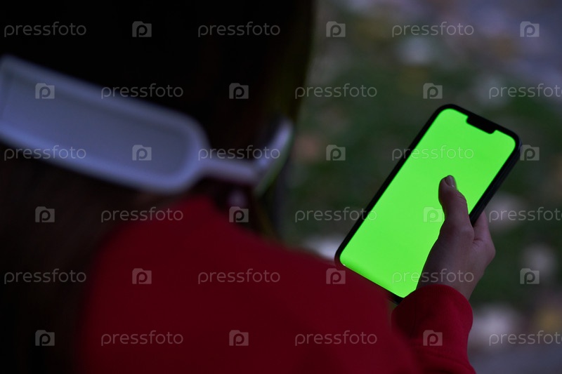 Уставшая фитнес-женщина после тренировки использует смартфон с зеленым экраном