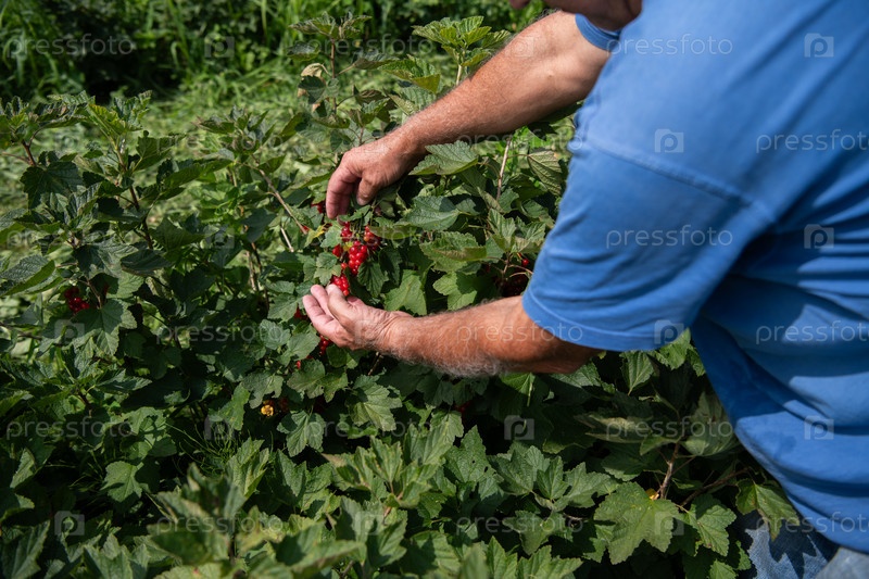 Старший фермер тщательно осматривает свою черничную ферму, чтобы убедиться в качестве и прогрессе
