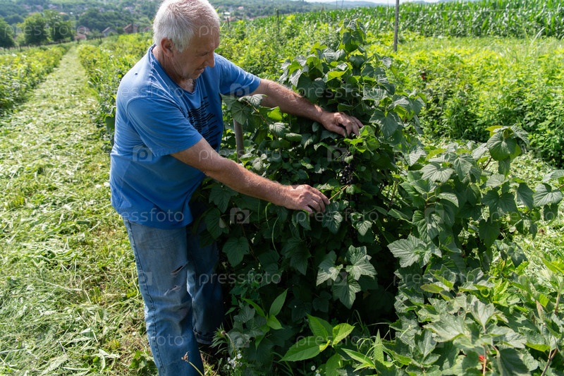 Старший фермер тщательно осматривает свою ягодную ферму, чтобы убедиться в качестве и прогрессе