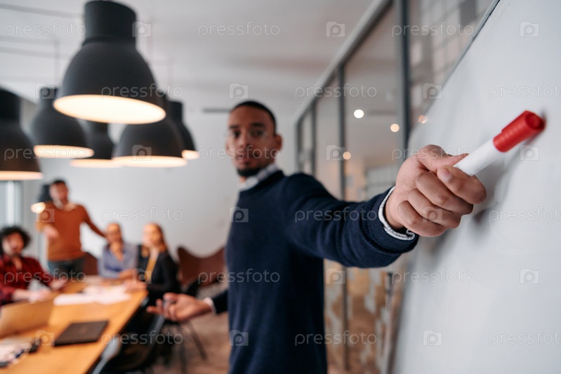 Стратегическое лидерство: афроамериканский бизнесмен возглавляет важную корпоративную встречу