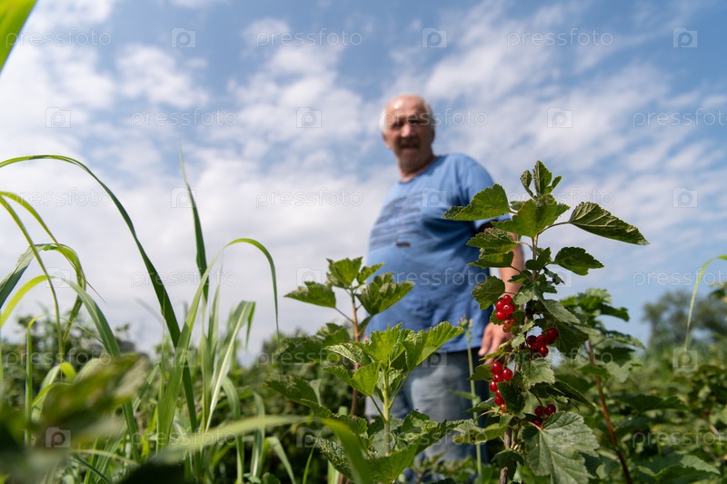 Старший фермер тщательно осматривает свою ягодную ферму, чтобы убедиться в качестве и прогрессе
