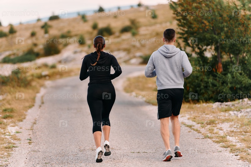 Бодрящая утренняя пробежка для пары в горах