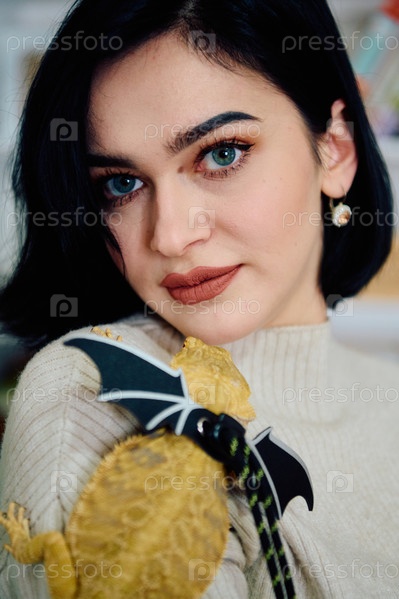 Красивая женщина позирует со своими очаровательными питомцами — бородатыми агамами