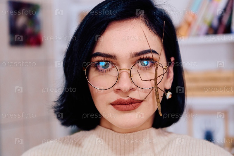 Молодая женщина, сфотографированная в прекрасный момент со своей палкой (Medauroidea Extradentata)