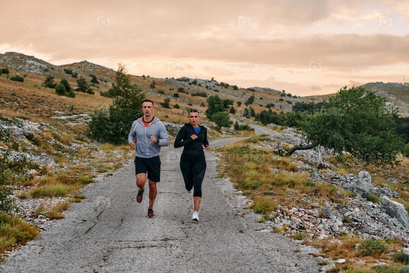 Бодрящая утренняя пробежка для пары в горах