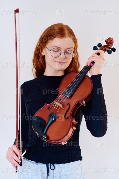 Потрясающая рыжеволосая музыкантша позирует со скрипкой на пленительном портрете