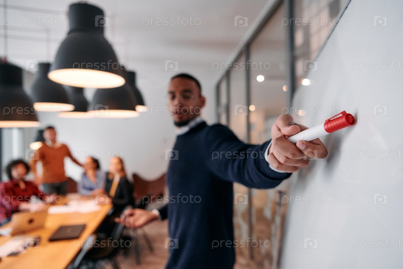 Стратегическое лидерство: афроамериканский бизнесмен возглавляет важную корпоративную встречу