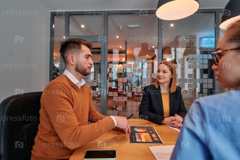 В яркой атмосфере современного офиса стартапа разнообразная команда профессионалов в сфере бизнеса участвует в обсуждениях различных проектов и разрабатывает новые бизнес-стратегии, олицетворяя креативность и инновации в предпринимательской среде