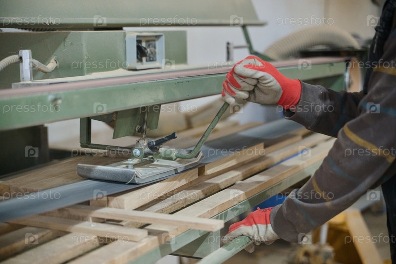 Крупный план рабочего, аккуратно режущего и строгающего деревянные детали для мебели в деревообрабатывающей промышленности