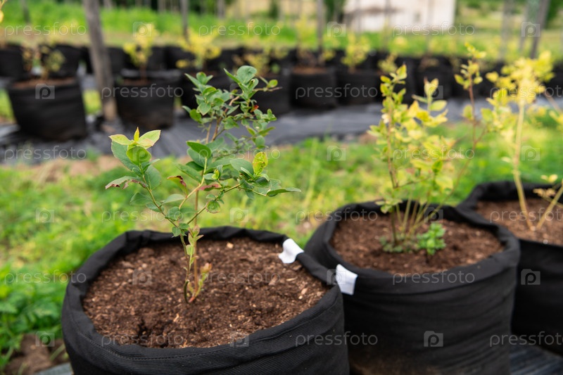 Молодые саженцы черники готовы к будущему производству свежих соков