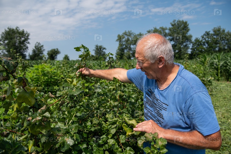 Старший фермер тщательно осматривает свою ягодную ферму, чтобы убедиться в качестве и прогрессе