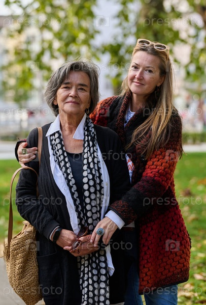 Сердечные объятия: дочь поддерживает свою мать в прекрасный осенний день