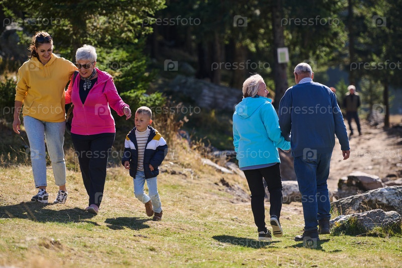 Семья разделяет прекрасные моменты с друзьями на фоне потрясающих пейзажей гор, озер и извилистых троп, пропагандируя здоровый образ жизни и радость семейных уз в объятиях красоты природы