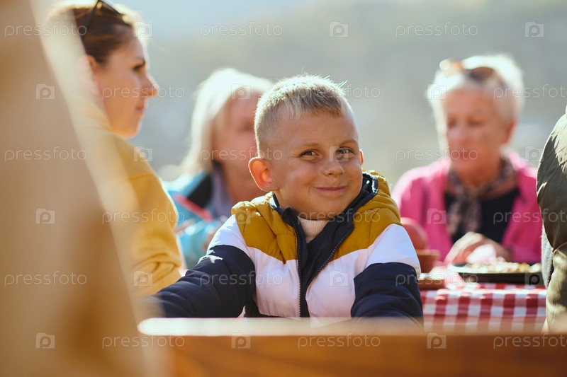 Семья, отдыхающая в горах, наслаждается радостями здорового образа жизни, наслаждаясь традиционным пирогом в окружении захватывающей дух красоты природы, укрепляя семейные узы и наслаждаясь жизненной силой своего горного уединения