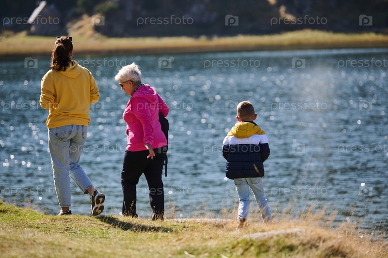 Семья разделяет прекрасные моменты с друзьями на фоне потрясающих пейзажей гор, озер и извилистых троп, пропагандируя здоровый образ жизни и радость семейных уз в объятиях красоты природы