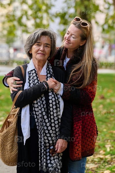 Сердечные объятия: дочь поддерживает свою мать в прекрасный осенний день