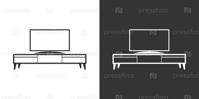 Мебельная интерьерная иконка с тумбочкой и телевизором. Черная и белая