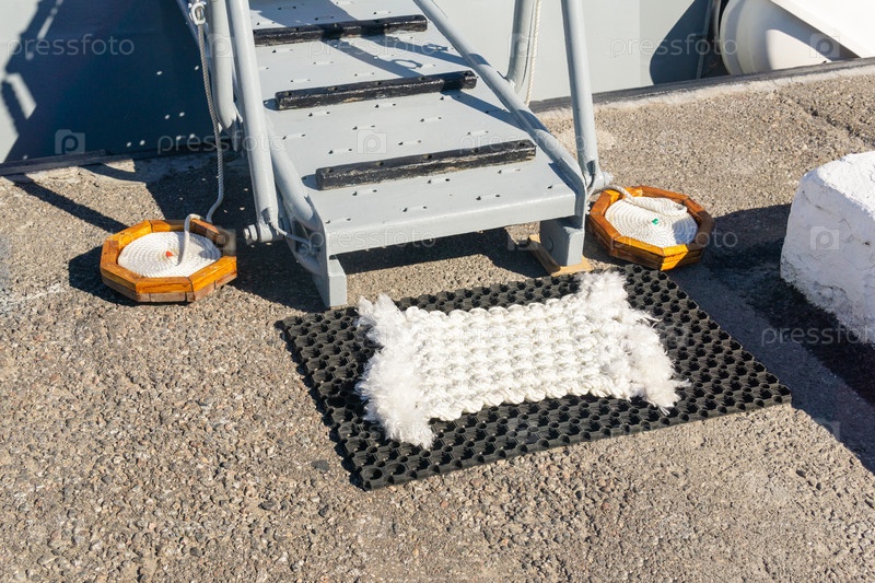 Морская традиция: белоснежный коврик, сплетенный из веревки, перед трапом подчеркивает чистоту палубы корабля
