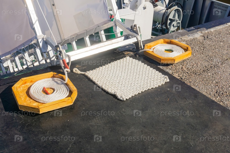 Морская традиция: белоснежный коврик, сплетенный из веревки, перед трапом подчеркивает чистоту палубы корабля