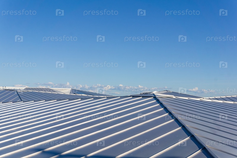 Полуабстрактный архитектурный фон, металлическая крыша современного здания на фоне неба