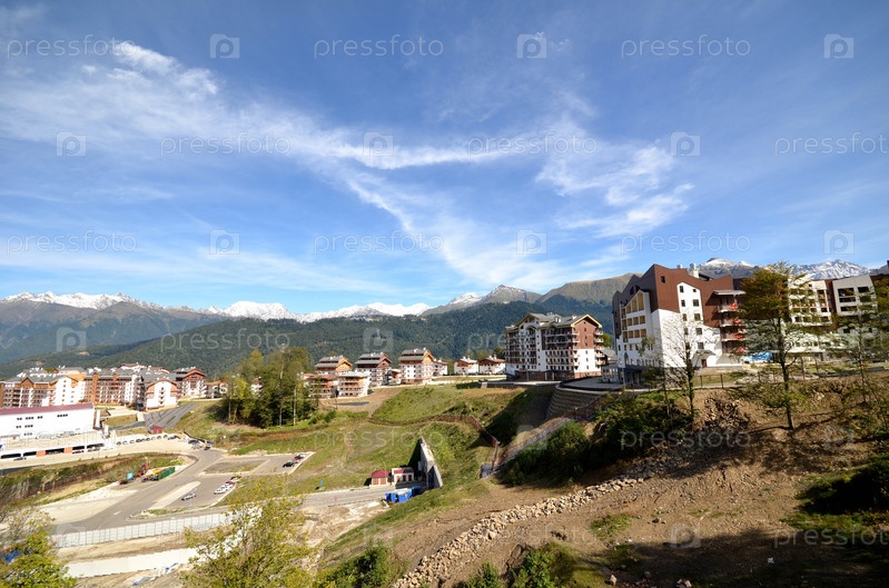 Вид на набережную реки Мцеста, Красная Поляна, Сочи, Россия