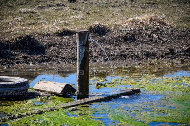 Артезианская скважина. Водопой. Древние горы Хакасии. Сахсыр