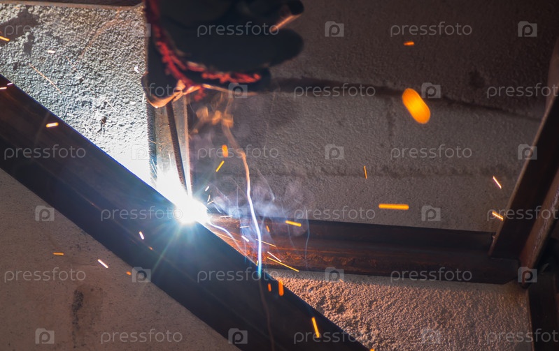 Процесс сварки металлических элементов со вспышками света и искрами