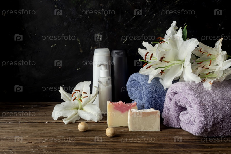 Предметы личной гигиены для спа, полотенца на столе крупным планом