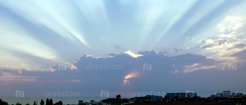 Красивые закатные облака с солнечными лучами