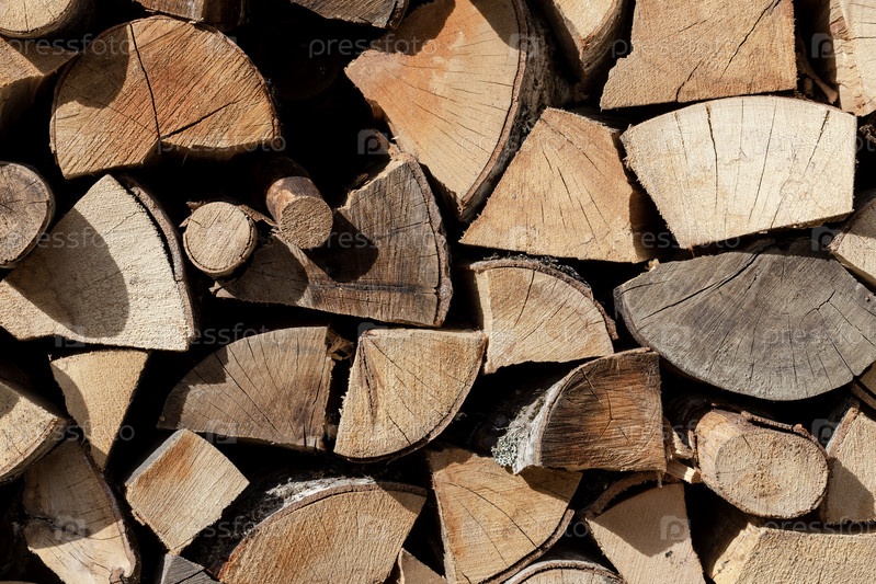 Дрова (деревянный фон) крупным планом, сложенные в поленницу