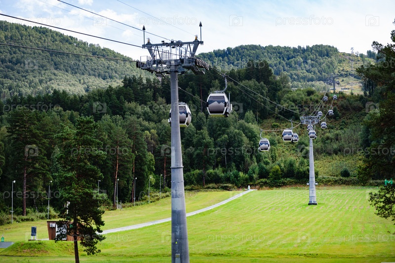 Белокуриха, Мангекок, Россия-18.08.2024:. Канатные дороги над пышной зеленью и лесистыми холмами в Манжероке
