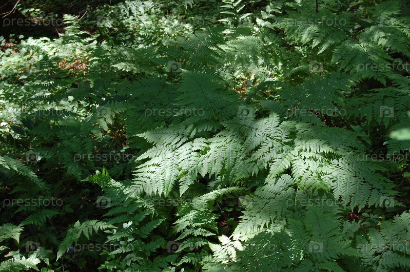 Лесной папоротник в тени деревьев
