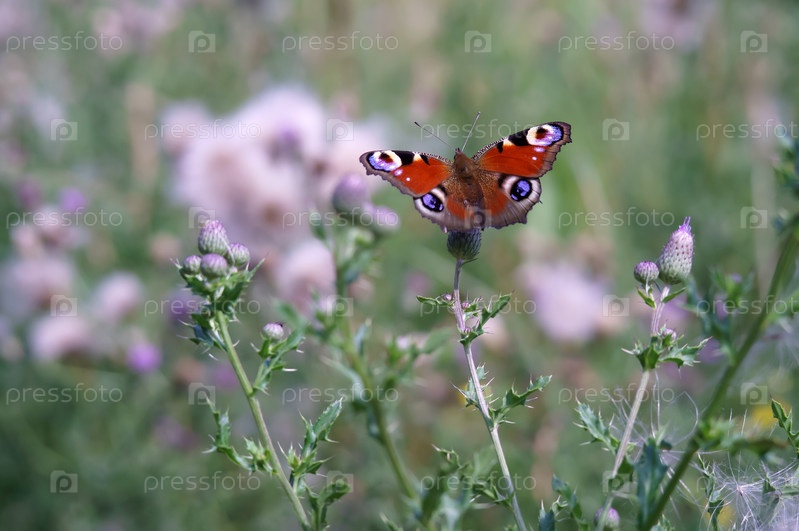 Яркая бабочка в дикой природе. Летний пейзаж с бабочкой