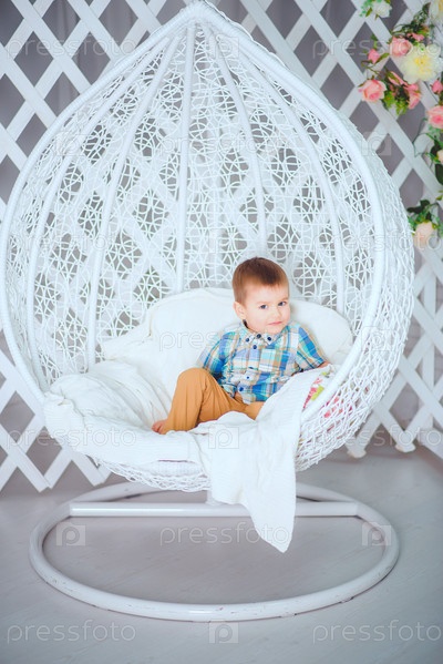 Ребенок наслаждается отдыхом в стильном кресле-яйце